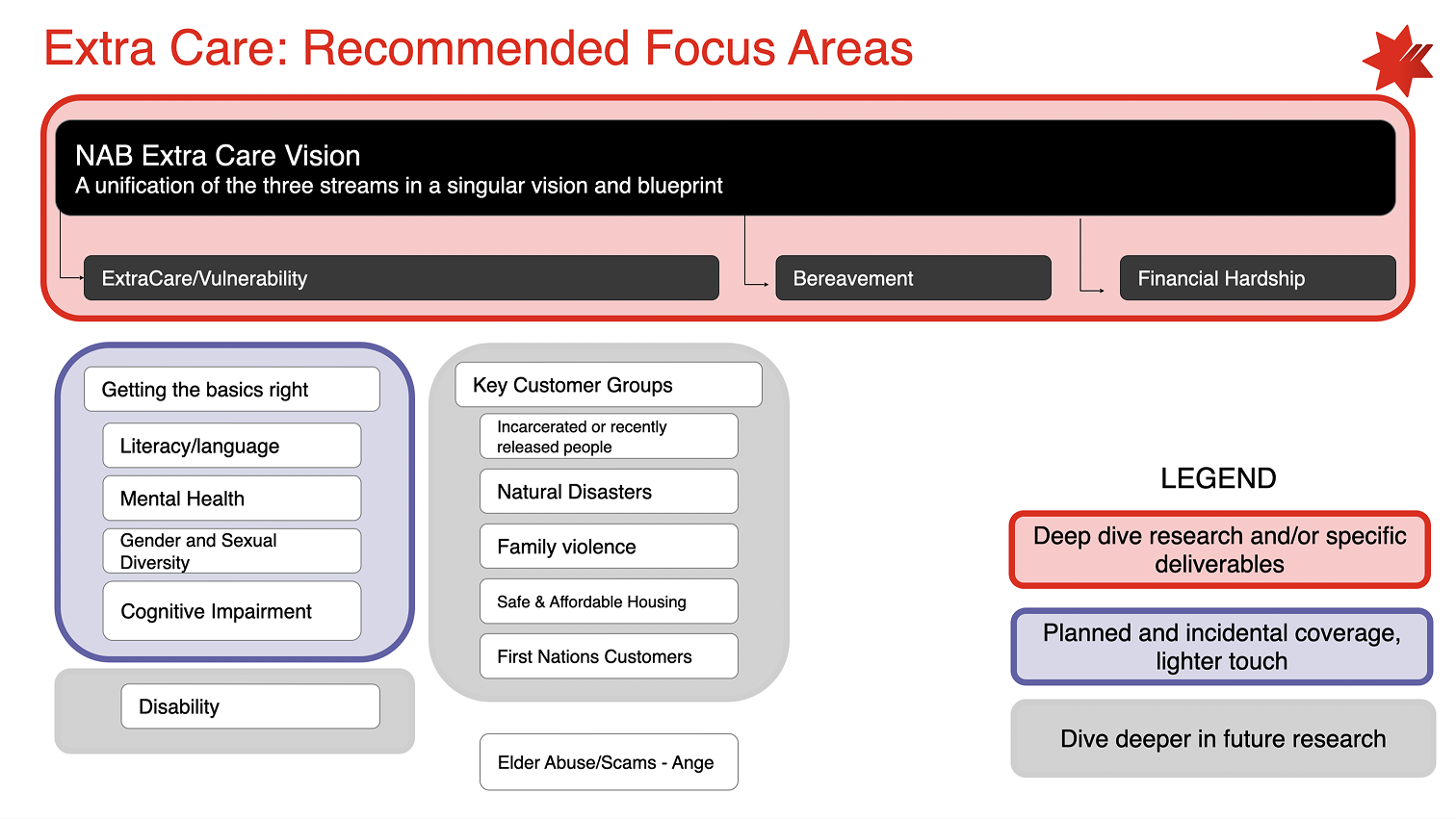We went with a split recruitment strategy. Some customer types were tricky to recruit via Farron (e.g. people who experienced domestic violence or financial hardship) so we partnered with community outreach organisations such as Uniting and Mercy Health.